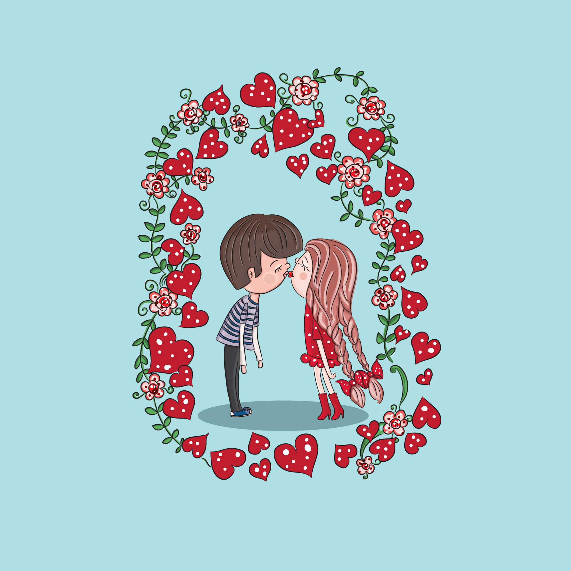 2000x2000 пара, поцелуй, любовь, арт обои