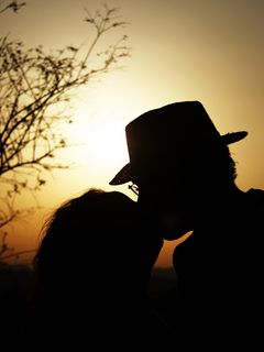 240x320 пара, поцелуй, любовь, темный, закат обои мобильный телефон, смартфон