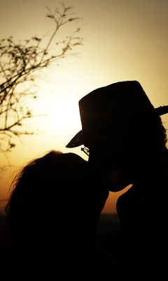 240x400 пара, поцелуй, любовь, темный, закат обои nokia asha 311, samsung galaxy 580, omnia, lg kp500