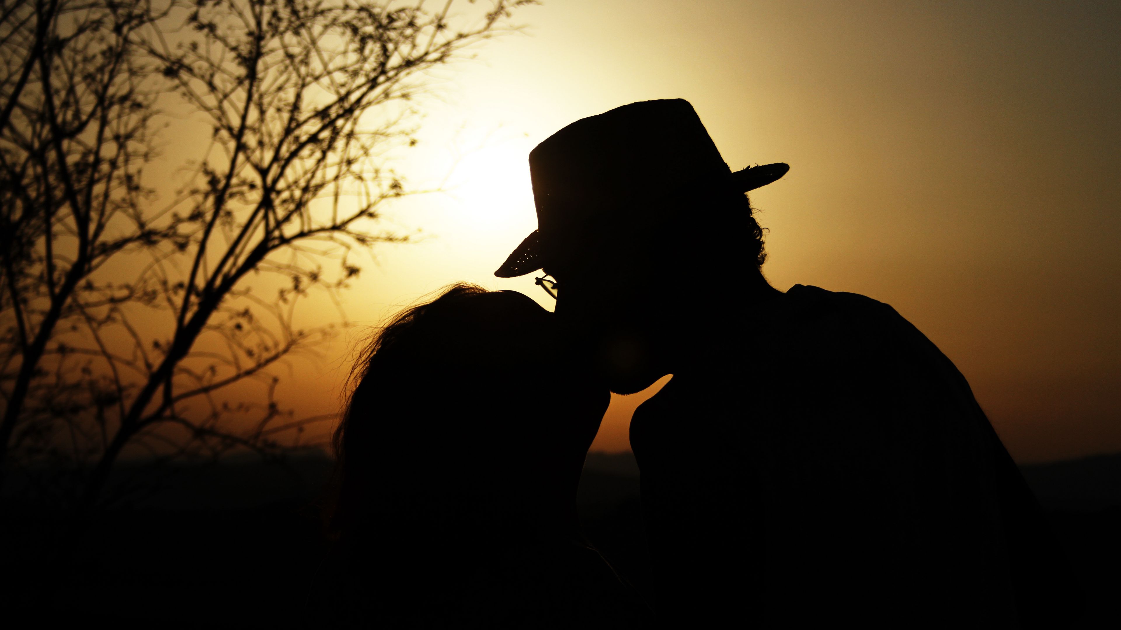 3840x2160 пара, поцелуй, любовь, темный, закат обои 4k uhd 16:9