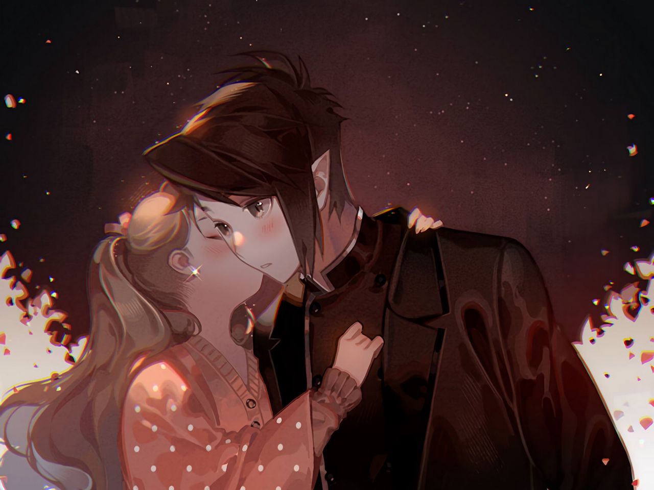 1280x960 пара, поцелуй, любовь, романтика, аниме обои стандарт 4:3