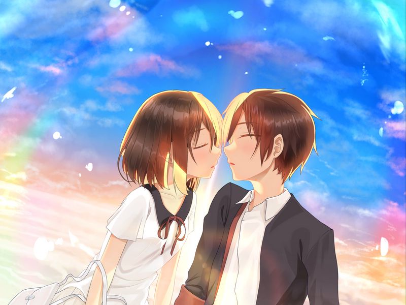 800x600 пара, поцелуй, любовь, аниме обои pocket pc, pda, кпк