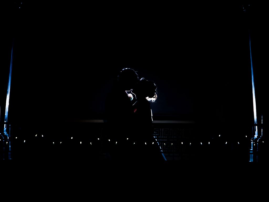 1024x768 пара, поцелуй, силуэты, нежность, романтика, ночь обои стандарт 4:3
