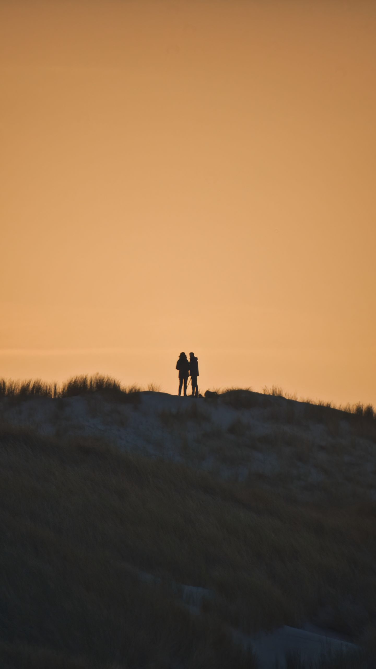 1440x2560 пара, силуэты, холм, трава, вечер обои qhd samsung galaxy s6, s7, edge, note, lg g4