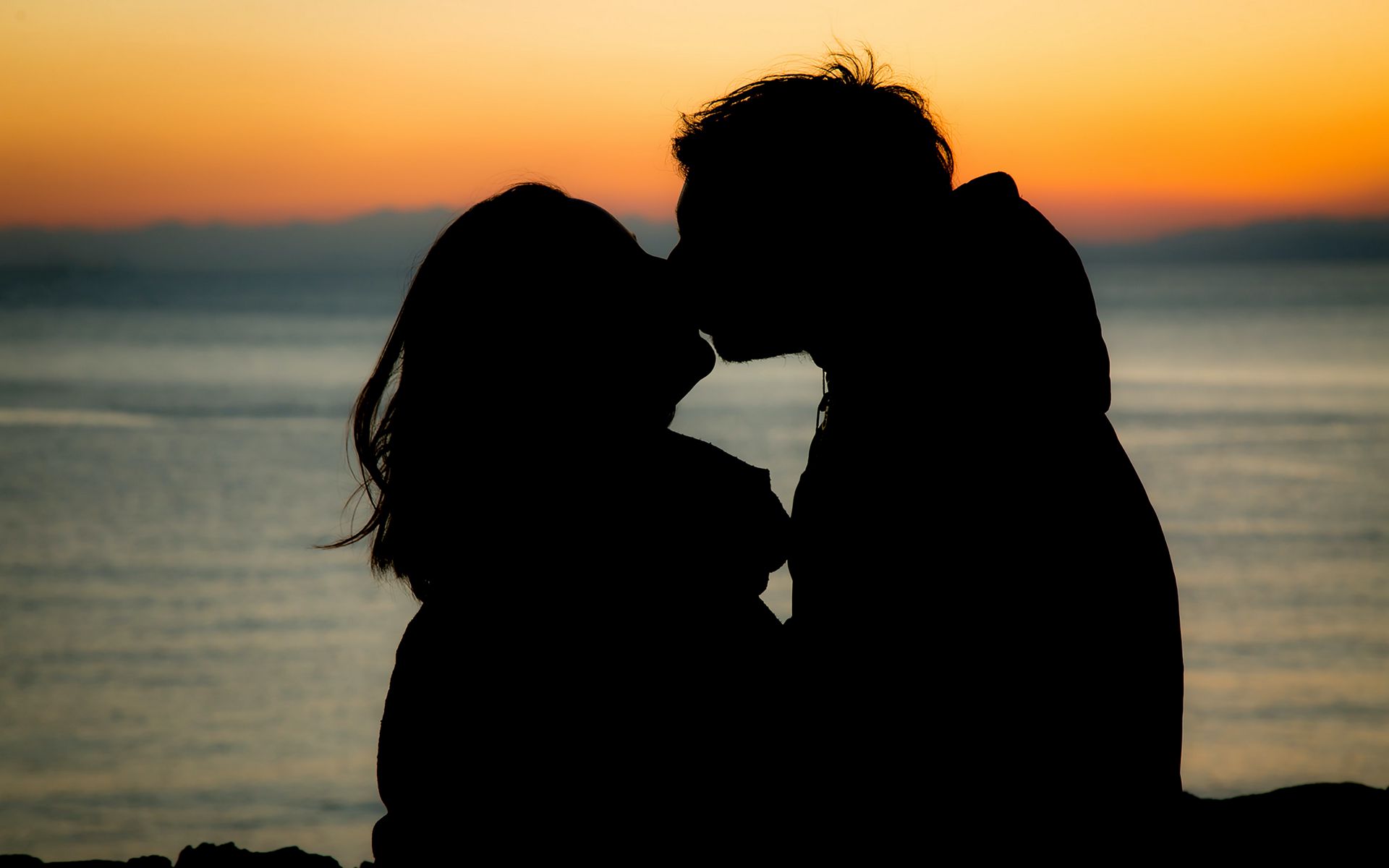 1920x1200 пара, силуэты, поцелуй, любовь, романтика, темный обои 16:10
