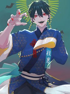 240x320 парень, демон, улыбка, кимоно, аниме обои мобильный телефон, смартфон