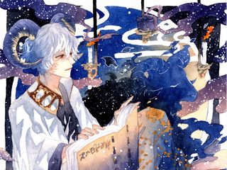 320x240 парень, рога, снег, акварель, аниме обои nokia e72, e71, asha, alcatel onetouch