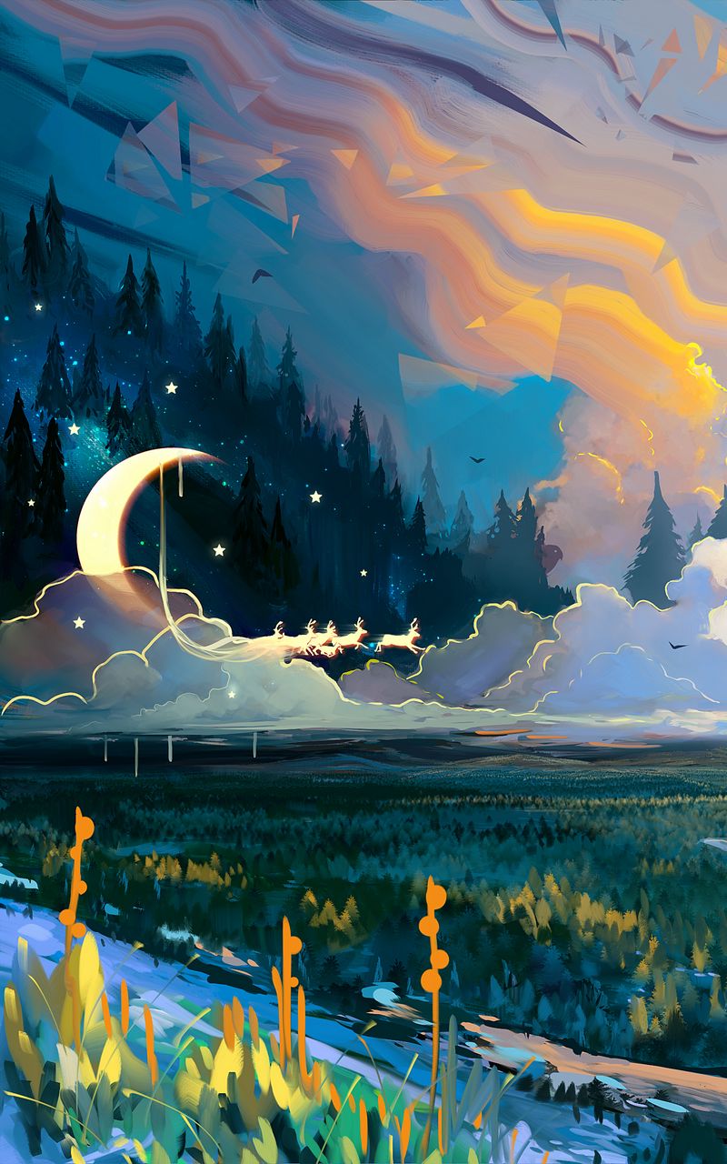 800x1280 пейзаж, арт, луна, трава, красочный обои samsung galaxy note gt-n7000, meizu mx2