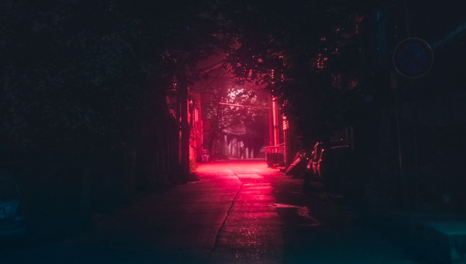 960x544 переулок, ночь, темный, городской, освещение, красный обои playstation ps vita