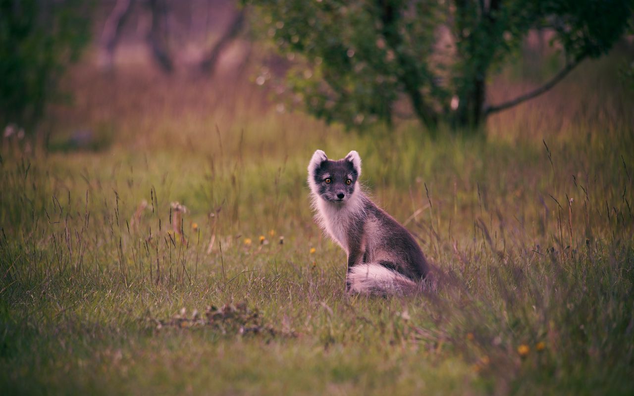 1280x800 песец, полярная лисица, арктическая лиса, сидит, трава обои 16:10