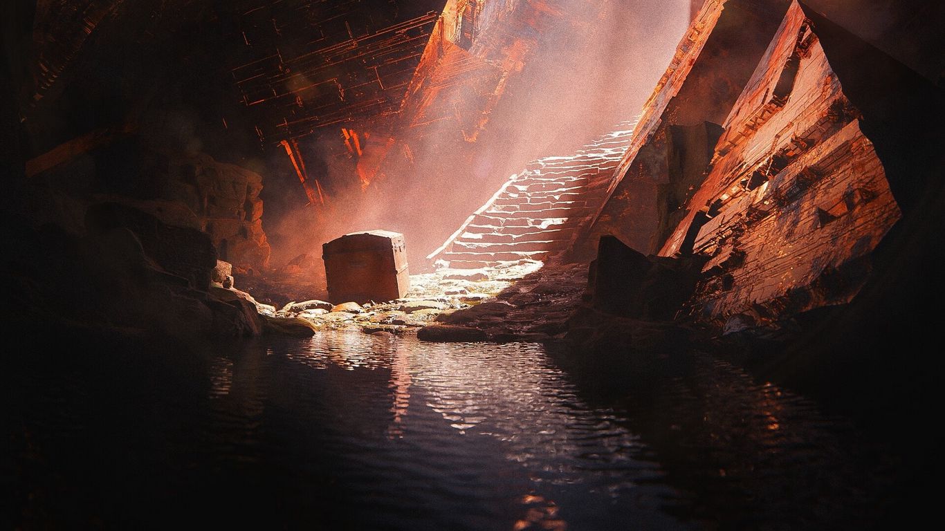 1366x768 пещера, руины, сундук, темный обои планшет, ноутбук