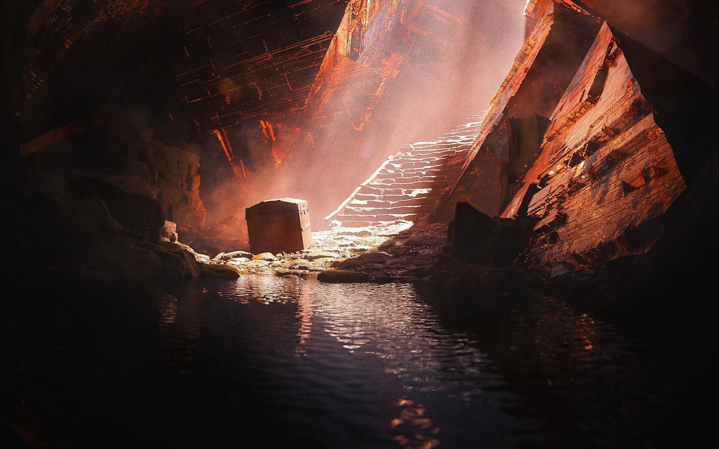 1440x900 пещера, руины, сундук, темный обои 16:10