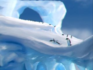 320x240 пингвины, лед, льдины, снег, арт обои nokia e72, e71, asha, alcatel onetouch