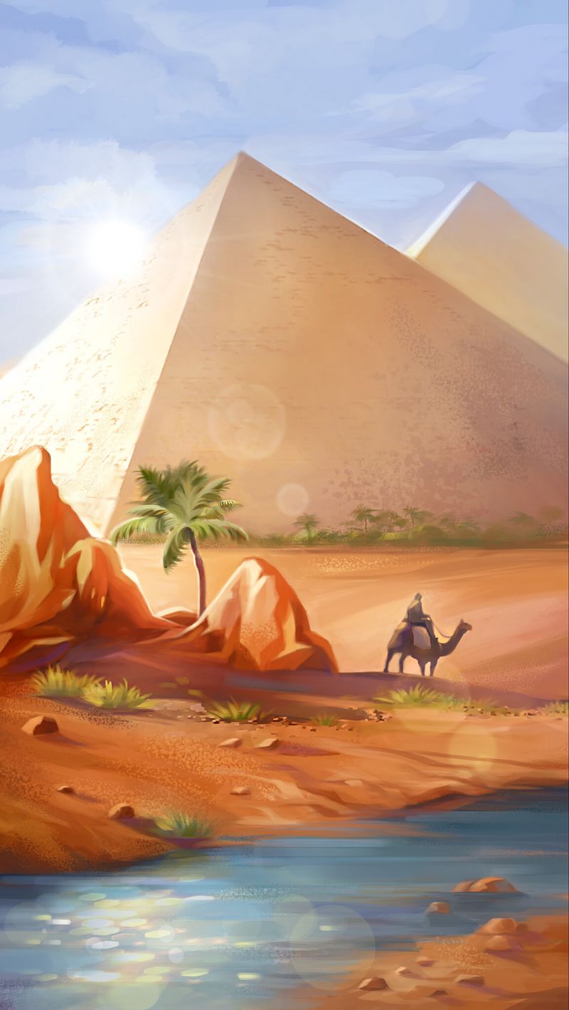 800x1420 пирамиды, пустыня, верблюд, арт обои iphone se/5s/5c/5 for parallax