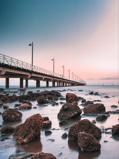 240x320 пирс, море, горизонт, камни обои мобильный телефон, смартфон