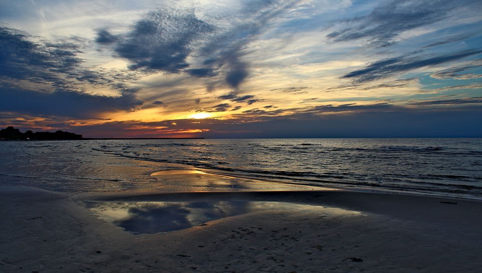 960x544 пляж, море, горизонт, облака, закат, темный обои playstation ps vita