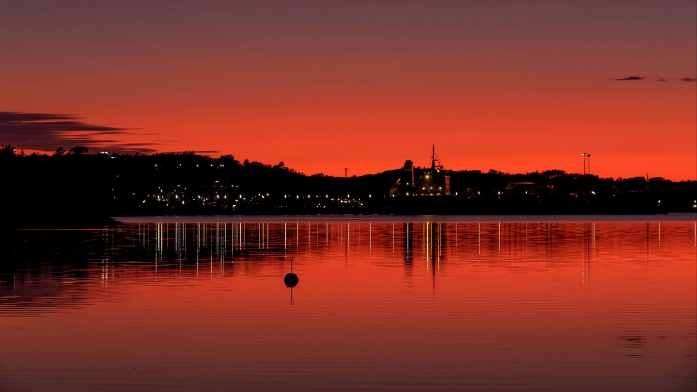 1366x768 побережье, вода, сумерки, темный, красный обои планшет, ноутбук
