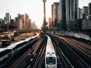 320x240 поезд, рельсы, город, здания, закат обои nokia e72, e71, asha, alcatel onetouch
