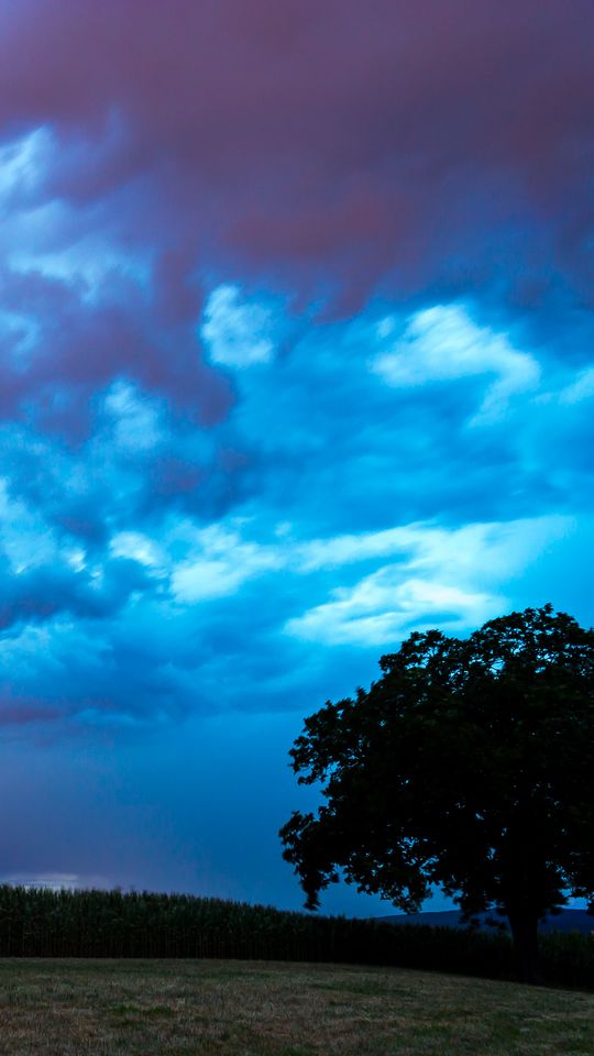 540x960 поле, облака, молнии, шторм, дерево обои samsung galaxy s4 mini, microsoft lumia 535, philips xenium, lg l90, htc sensation