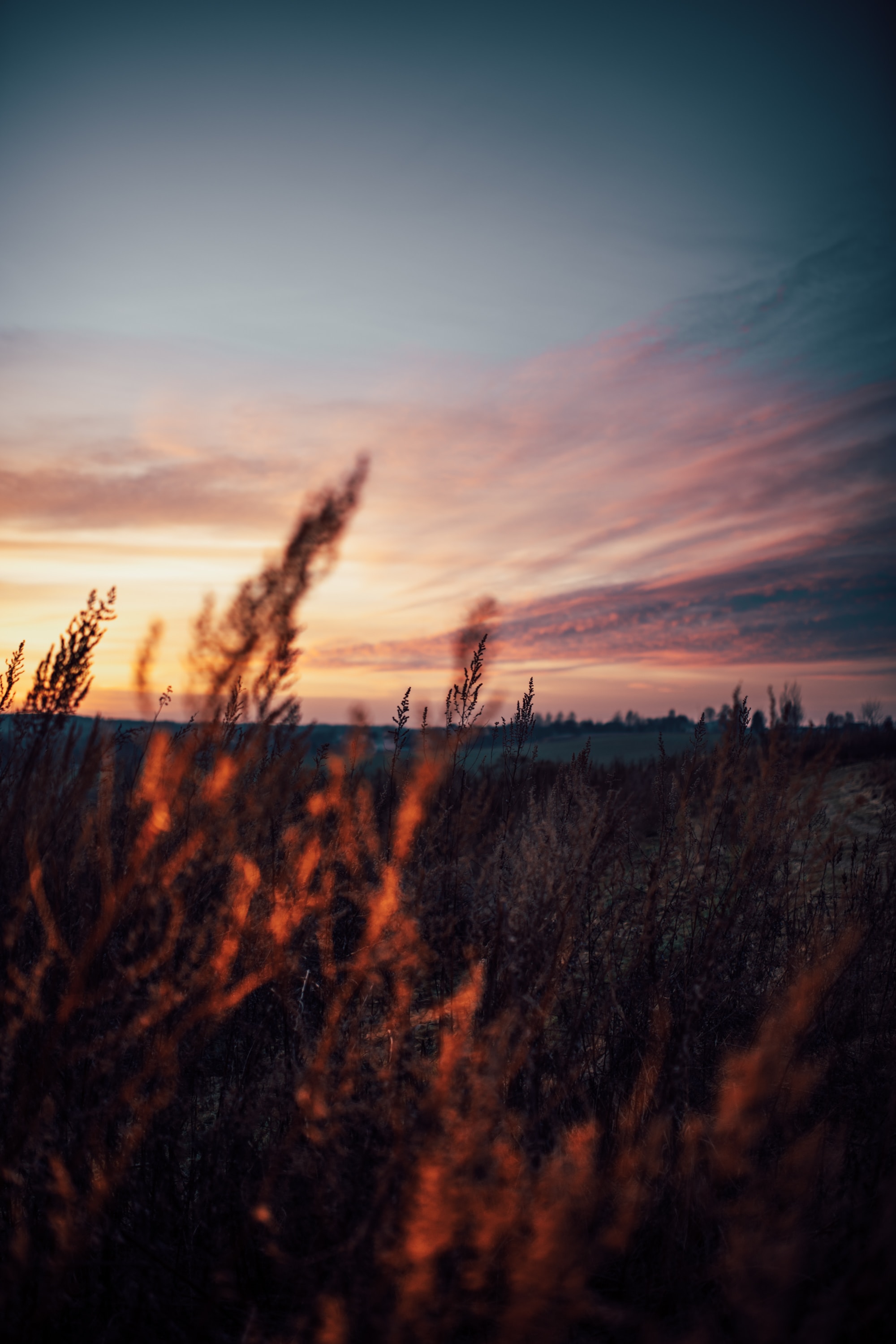 2000x3000 поле, трава, сумерки, природа, вечер обои