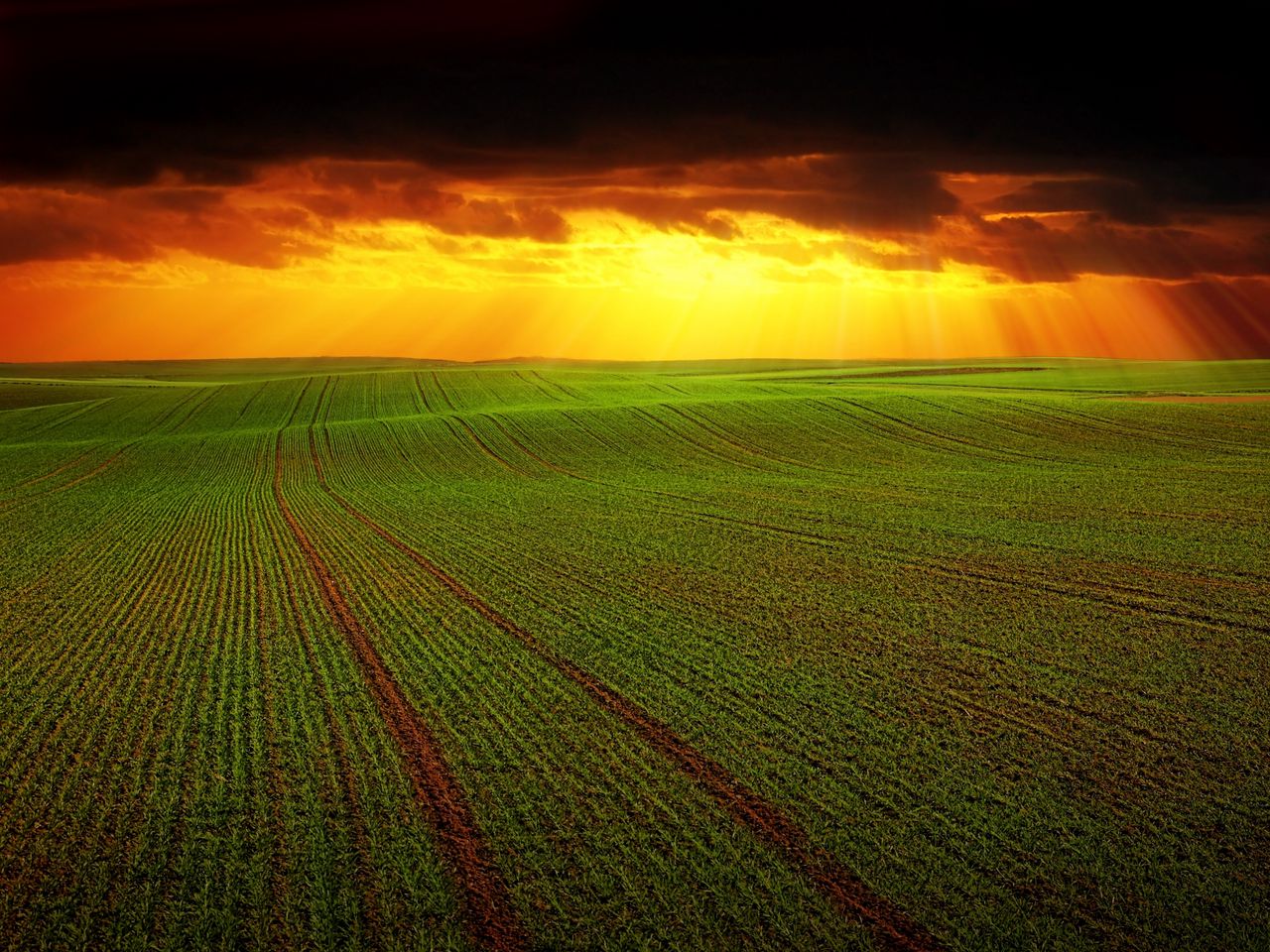 1280x960 поле, тучи, горизонт, трава, сельское хозяйство, облака обои стандарт 4:3