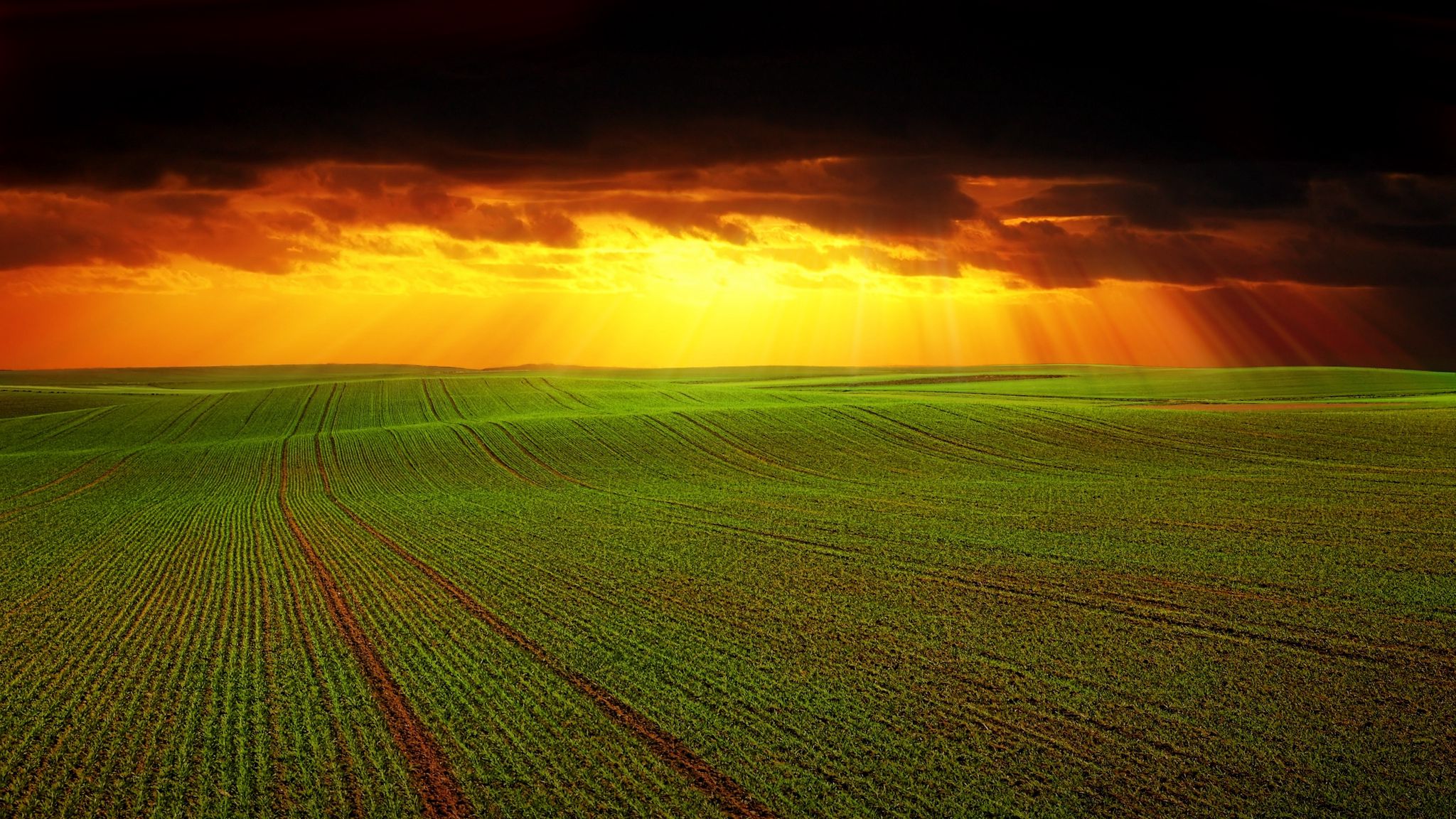 2048x1152 поле, тучи, горизонт, трава, сельское хозяйство, облака обои ультраширокий монитор