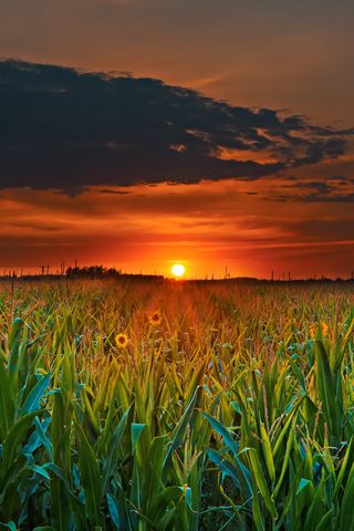 320x480 поле, закат, горизонт, цветы, облака обои samsung galaxy ace gt-s5830, sony xperia e, miro, htc wildfire s, c, lg optimus