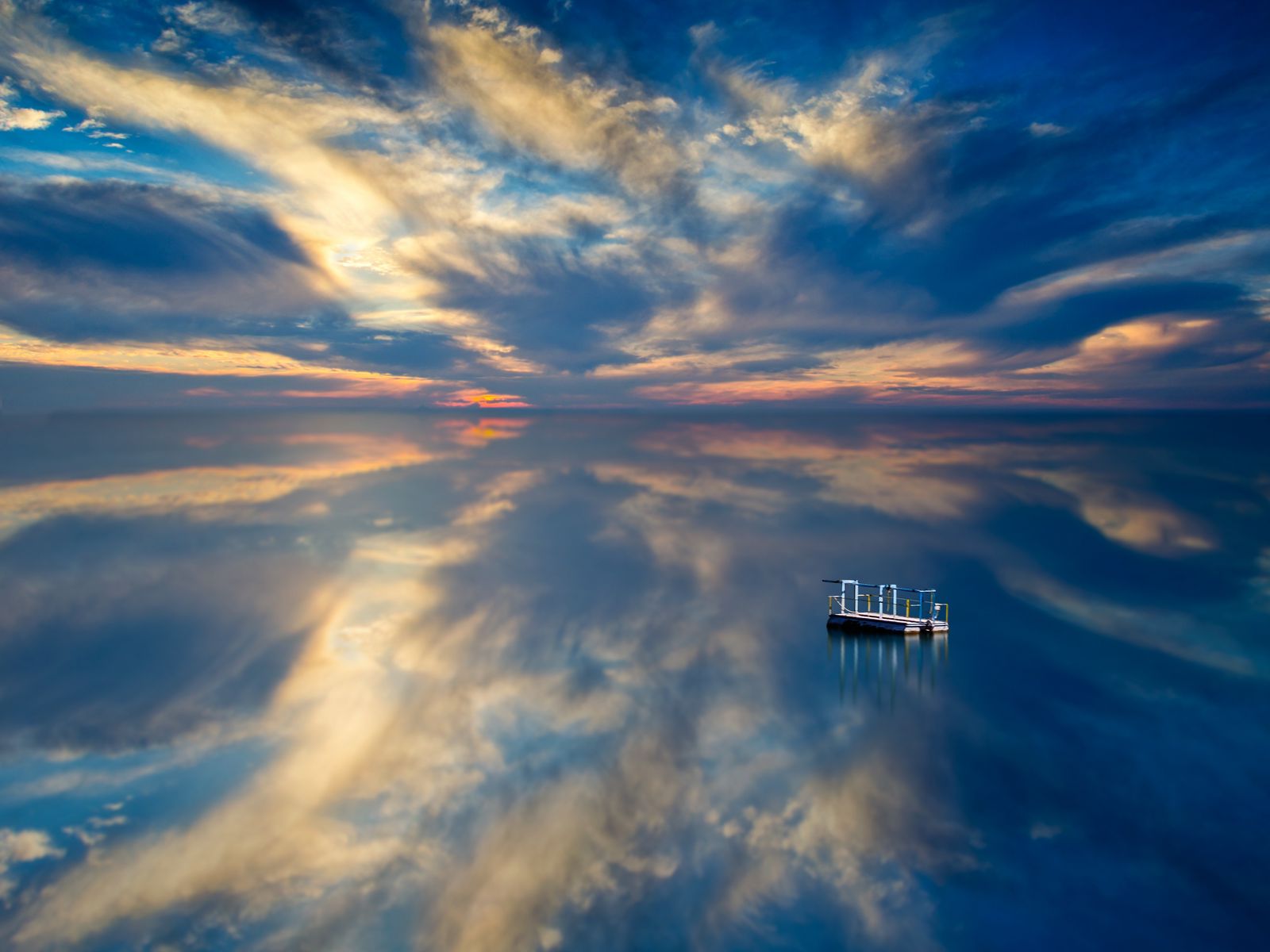 1600x1200 понтон, плот, море, горизонт, закат обои стандарт 4:3