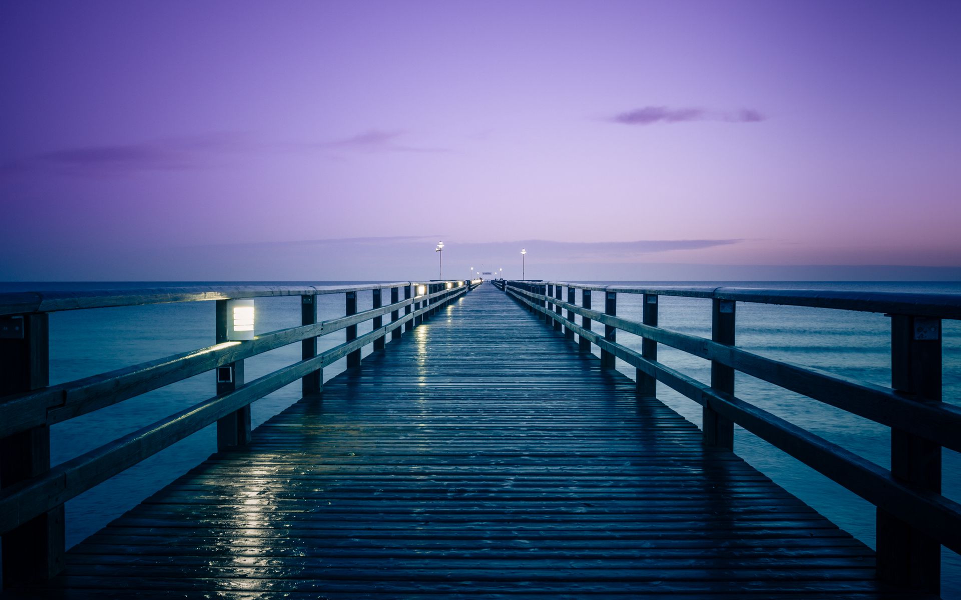 1920x1200 пристань, горизонт, море, темный, фиолетовый, синий обои 16:10