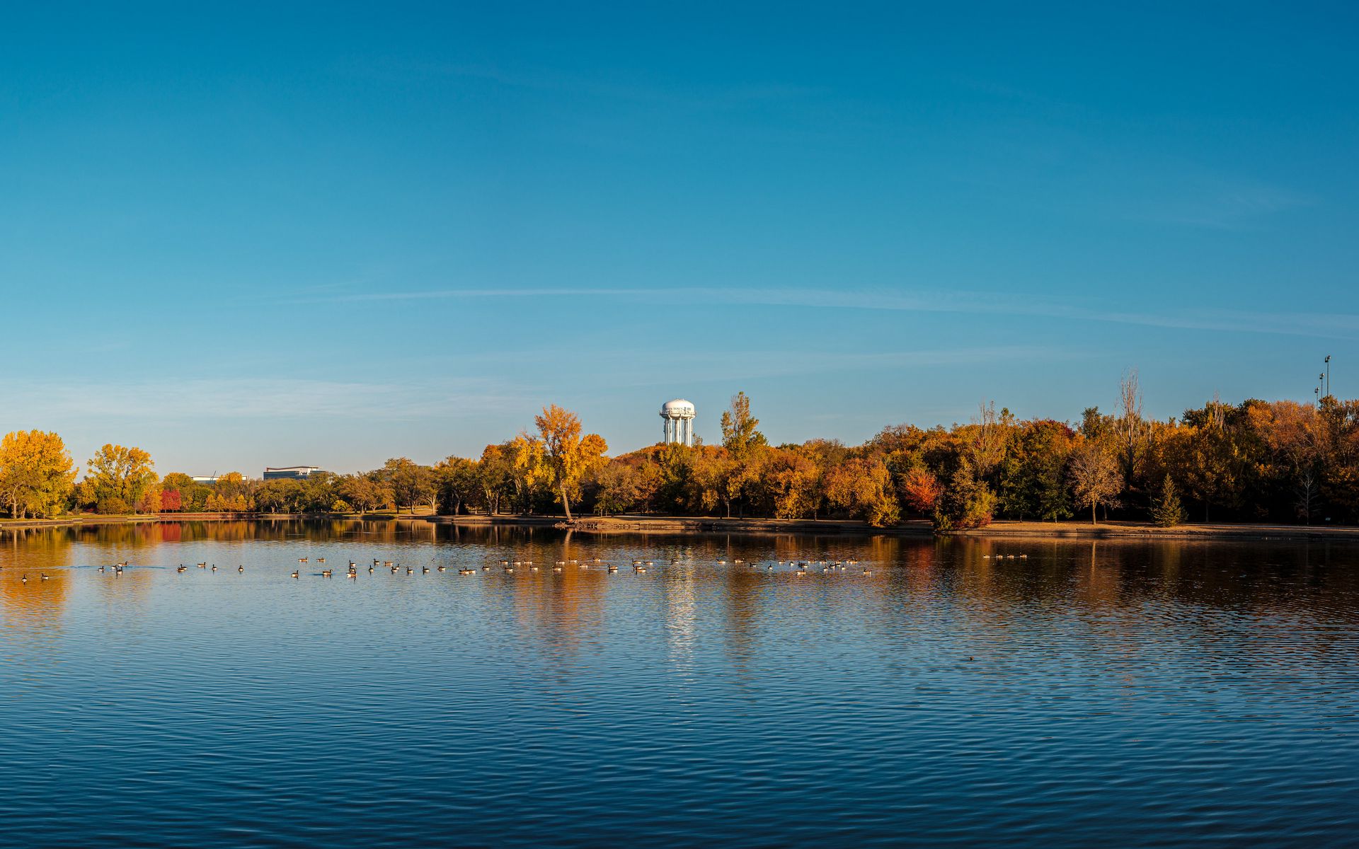 1920x1200 пруд, деревья, башня, небо обои 16:10