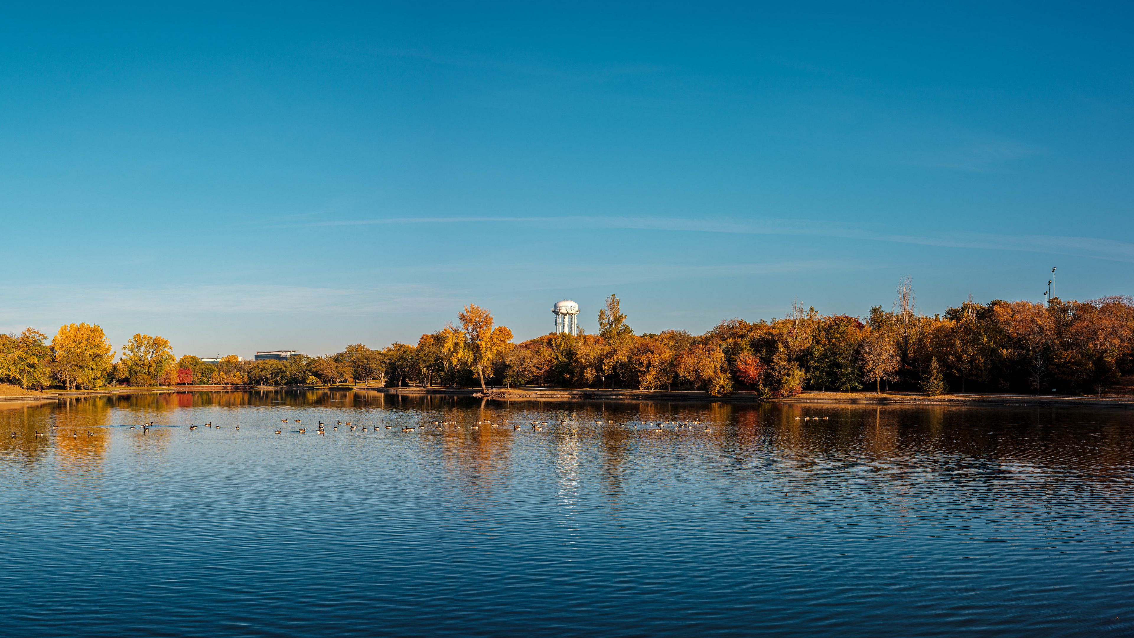 3840x2160 пруд, деревья, башня, небо обои 4k uhd 16:9