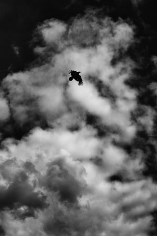 320x480 птица, облака, чб, полет, небо обои samsung galaxy ace gt-s5830, sony xperia e, miro, htc wildfire s, c, lg optimus