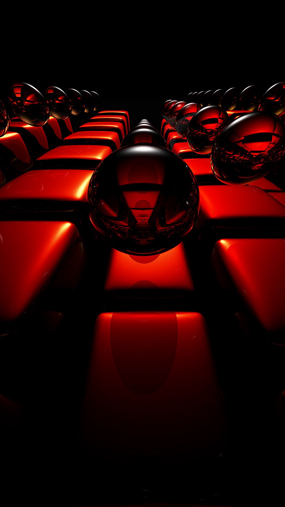 938x1668 пузыри, квадраты, отражения, красный, темный, 3d обои iphone 8/7/6s/6 for parallax