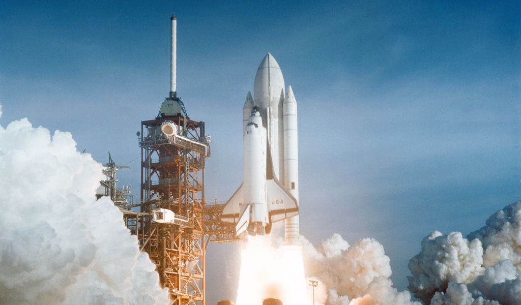 1024x600 ракета, шаттл, взлет, дым, облака обои нетбук, планшет