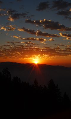 240x400 рассвет, горизонт, деревья, горы, небо, облака обои nokia asha 311, samsung galaxy 580, omnia, lg kp500