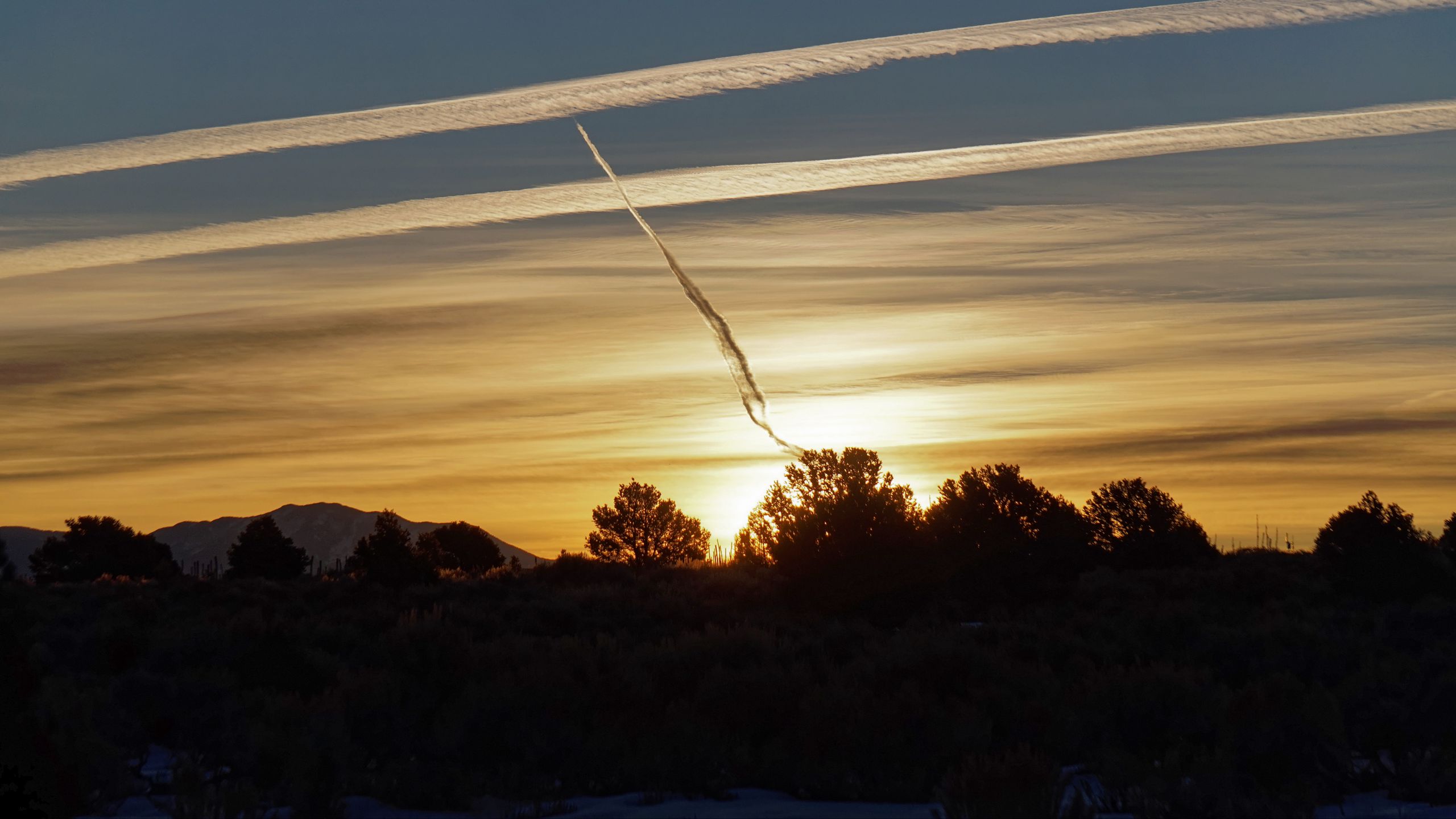 2560x1440 рассвет, небо, облака, деревья, сумерки обои 16:9
