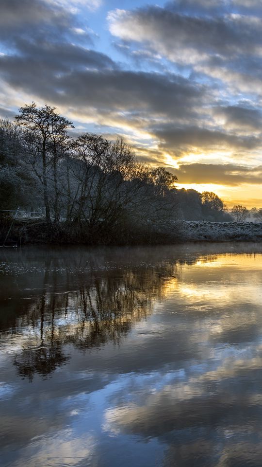 540x960 рассвет, отражение, деревья, облака обои samsung galaxy s4 mini, microsoft lumia 535, philips xenium, lg l90, htc sensation