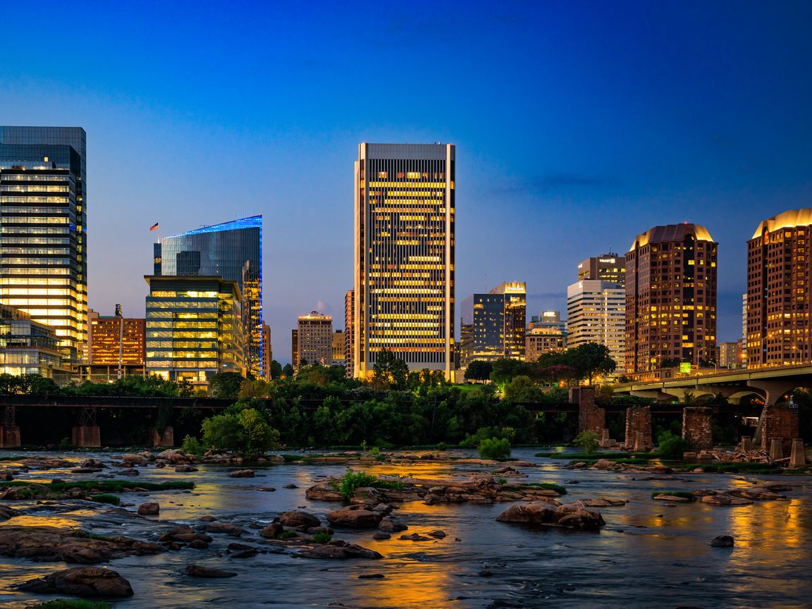 1152x864 река, город, здания, свет, вечер, темный обои стандарт 4:3