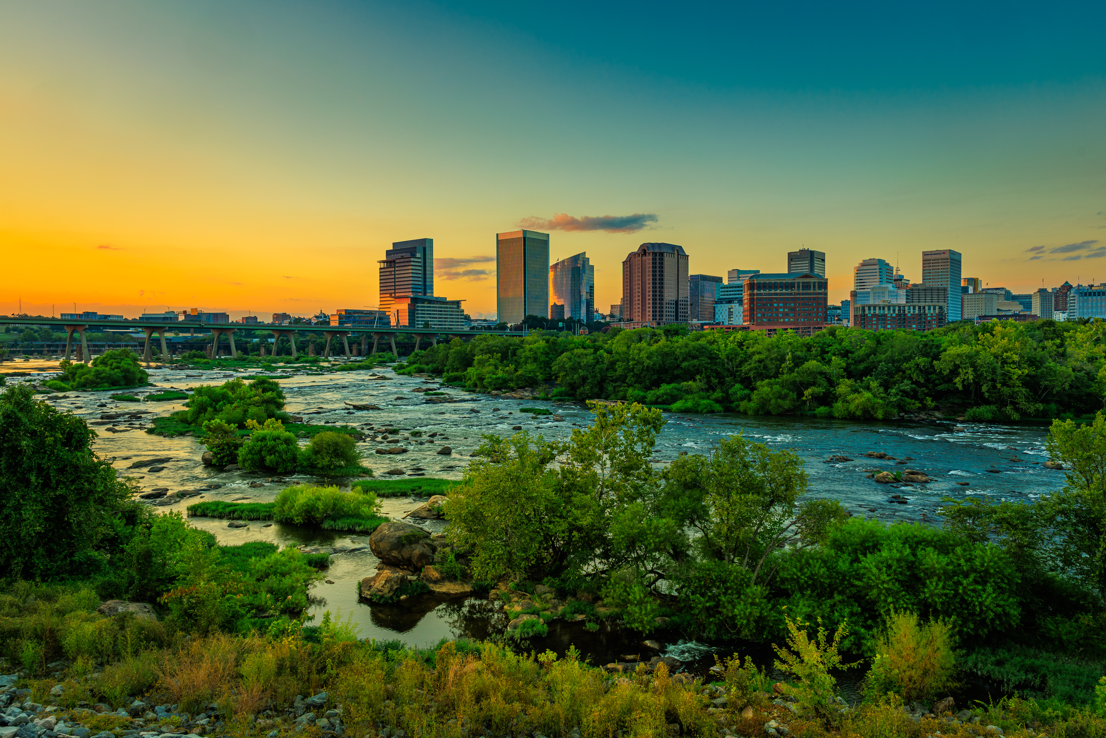 3600x2401 река, мост, деревья, здания, город, природа обои