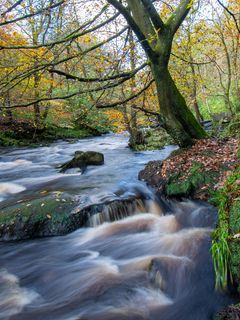 240x320 река, поток, лес, камни обои мобильный телефон, смартфон