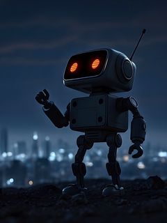240x320 робот, город, ночь, огни, размытие обои мобильный телефон, смартфон