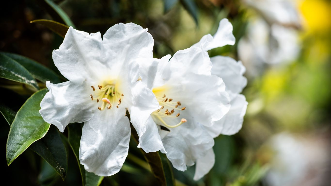 1366x768 рододендрон, цветы, лепестки, листья, макро обои планшет, ноутбук