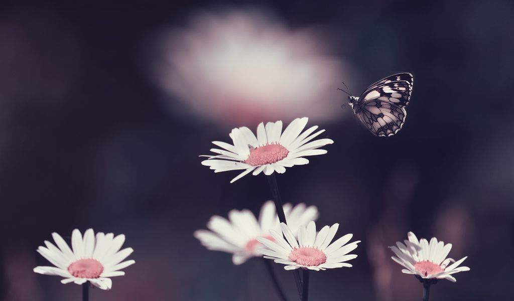 1024x600 ромашки, цветы, бабочка, макро обои нетбук, планшет