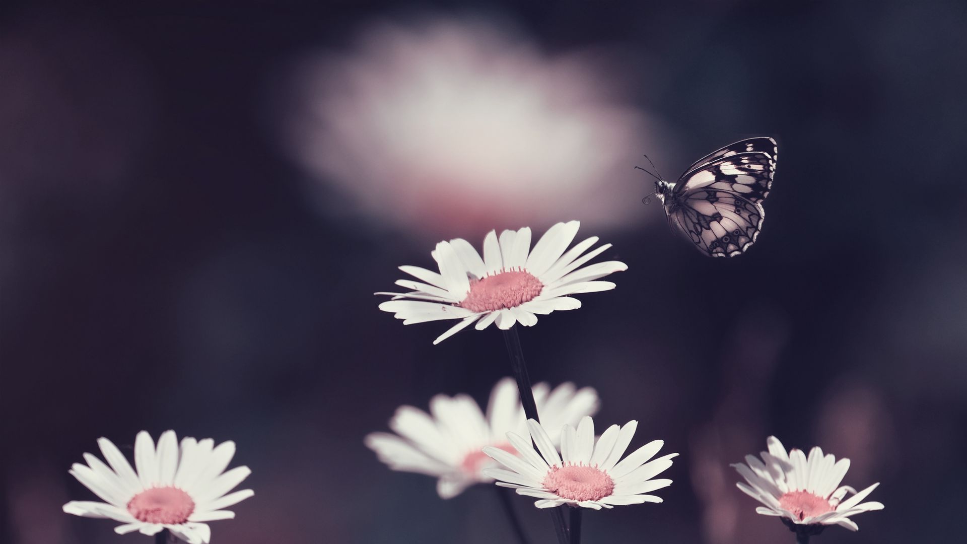 1920x1080 ромашки, цветы, бабочка, макро обои full hd, hdtv, fhd, 1080p