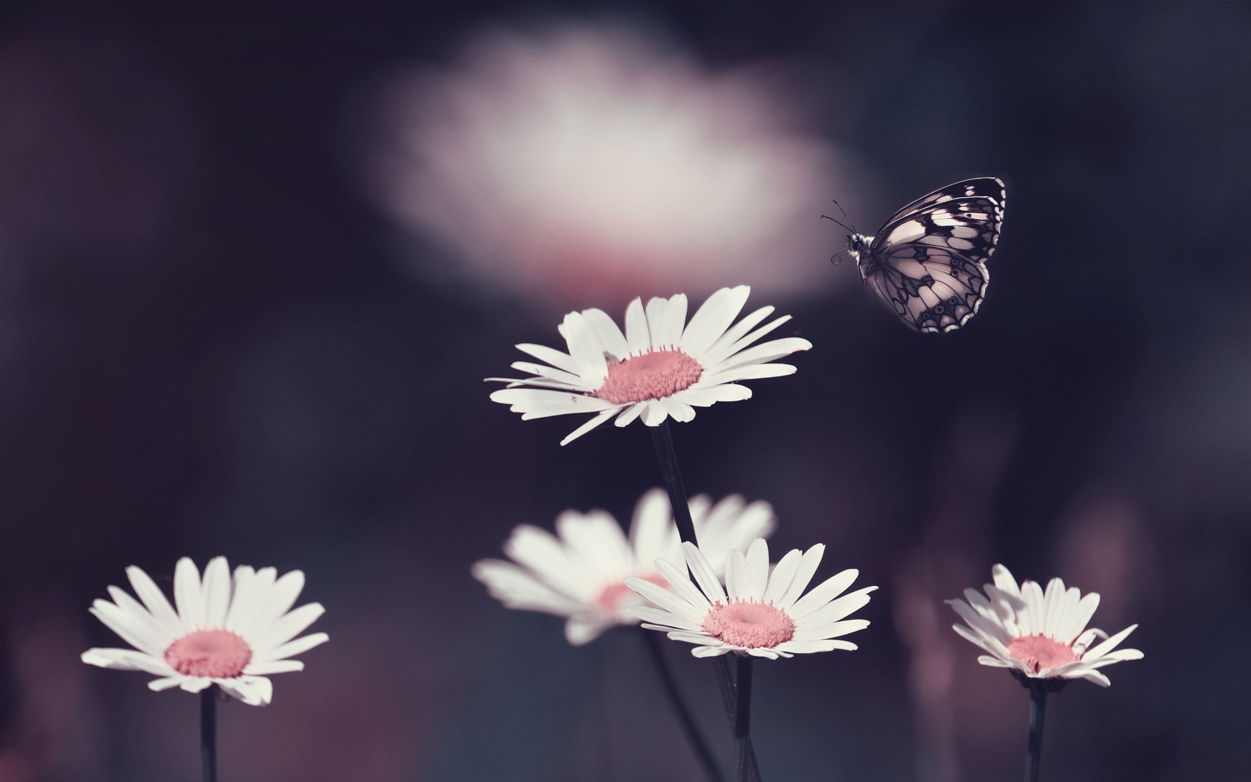 2560x1600 ромашки, цветы, бабочка, макро обои 16:10