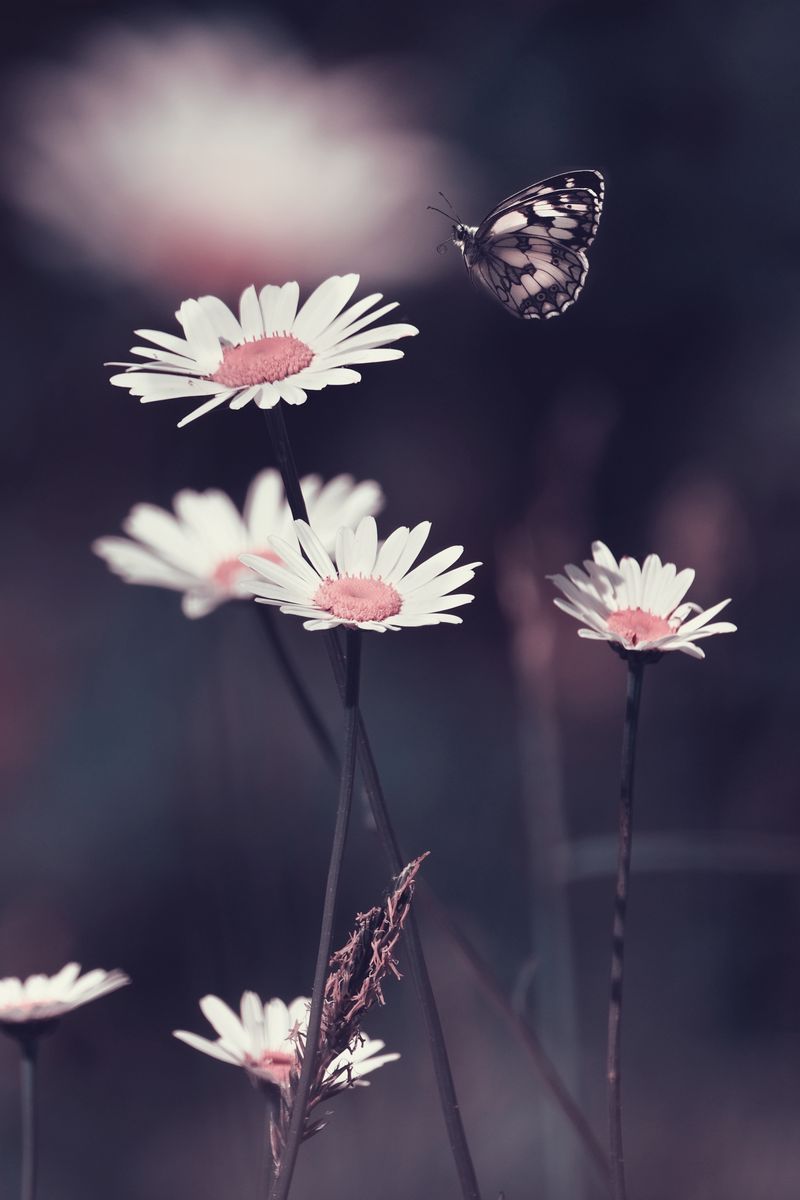 800x1200 ромашки, цветы, бабочка, макро обои iphone 4s/4 for parallax