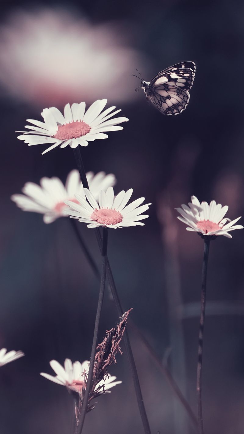 800x1420 ромашки, цветы, бабочка, макро обои iphone se/5s/5c/5 for parallax
