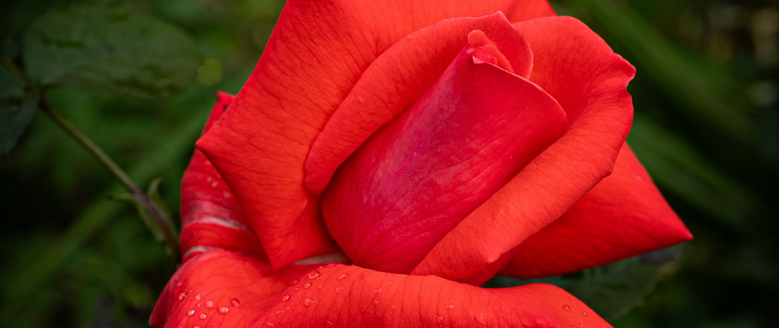 2560x1080 роза, лепестки, цветок, капли, роса, красный, макро обои два монитора 1080p