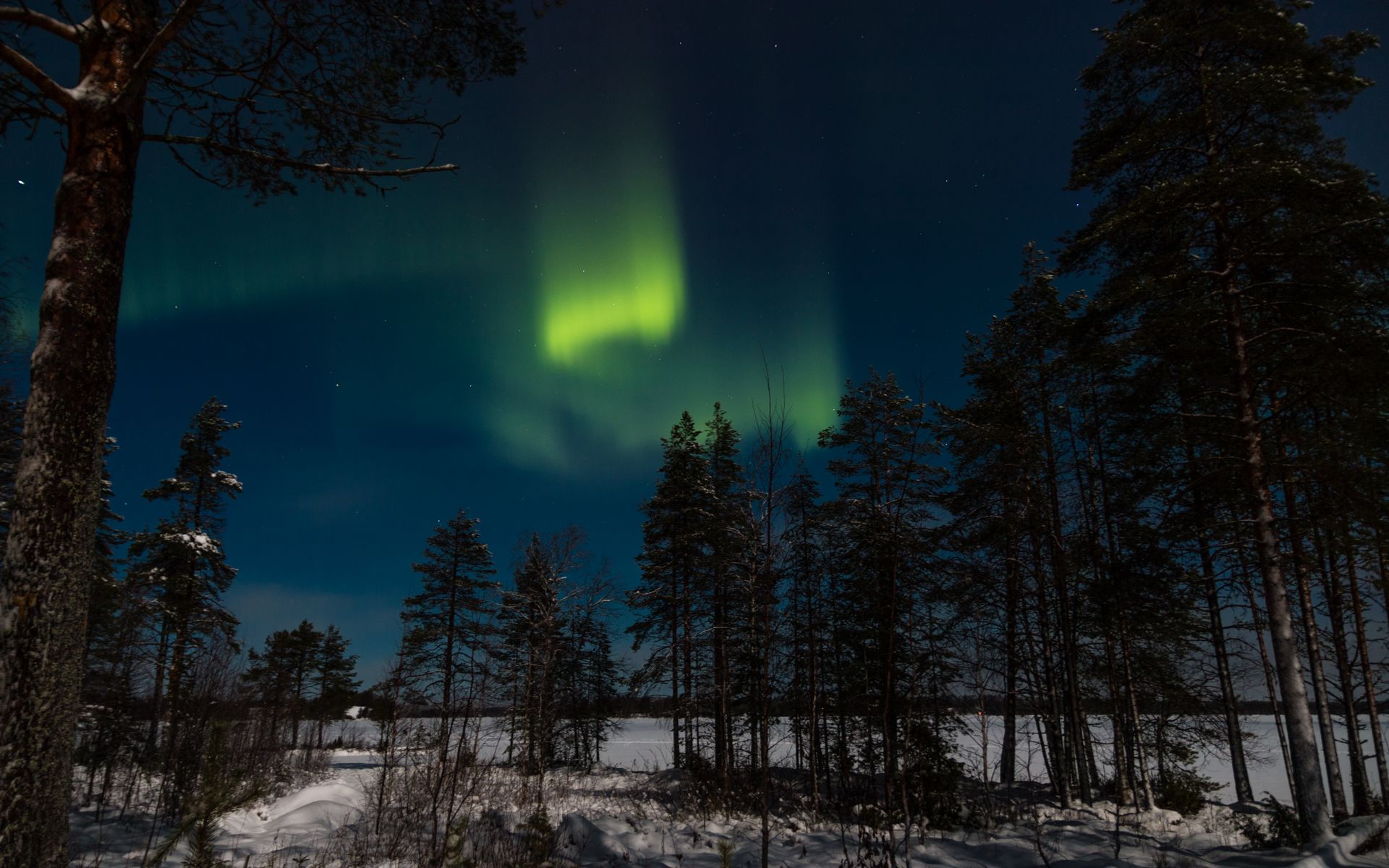 1920x1200 северное сияние, аврора, зима, лес, ночь, деревья, небо обои 16:10
