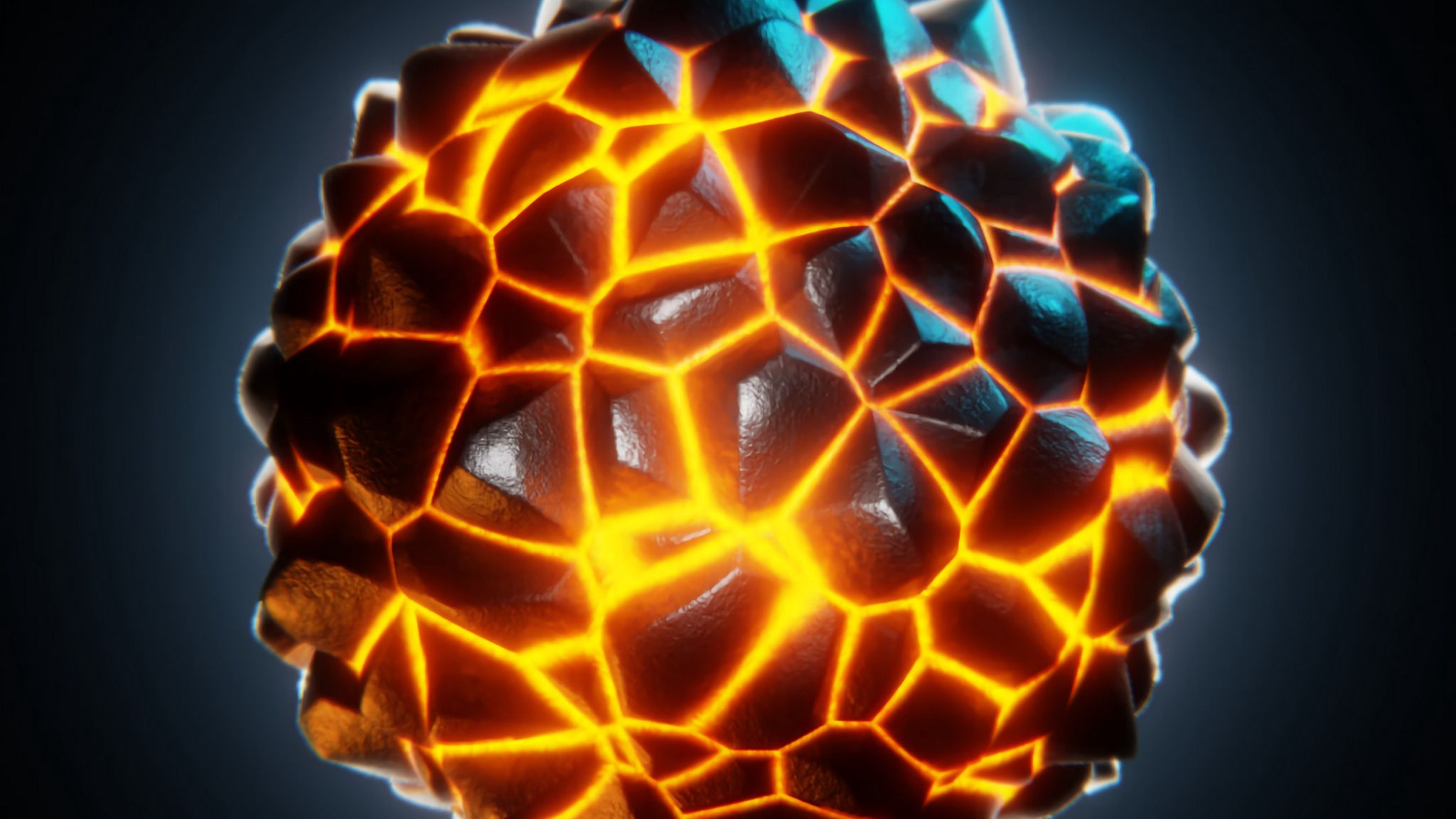2048x1152 шар, трещины, лава, свечение, 3d обои ультраширокий монитор